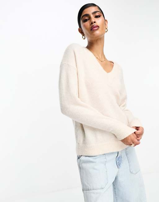 Cream v outlet neck jumper womens
