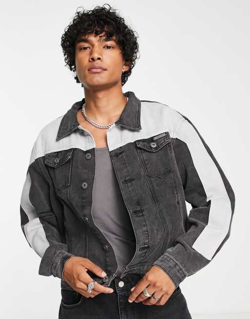 Half white half black outlet jean jacket
