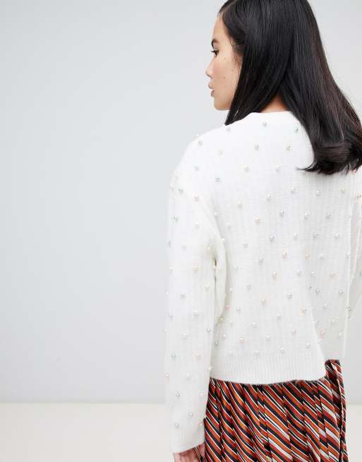 White cardigan outlet with pearls