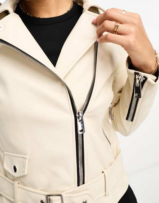 Beige leather outlet biker jacket