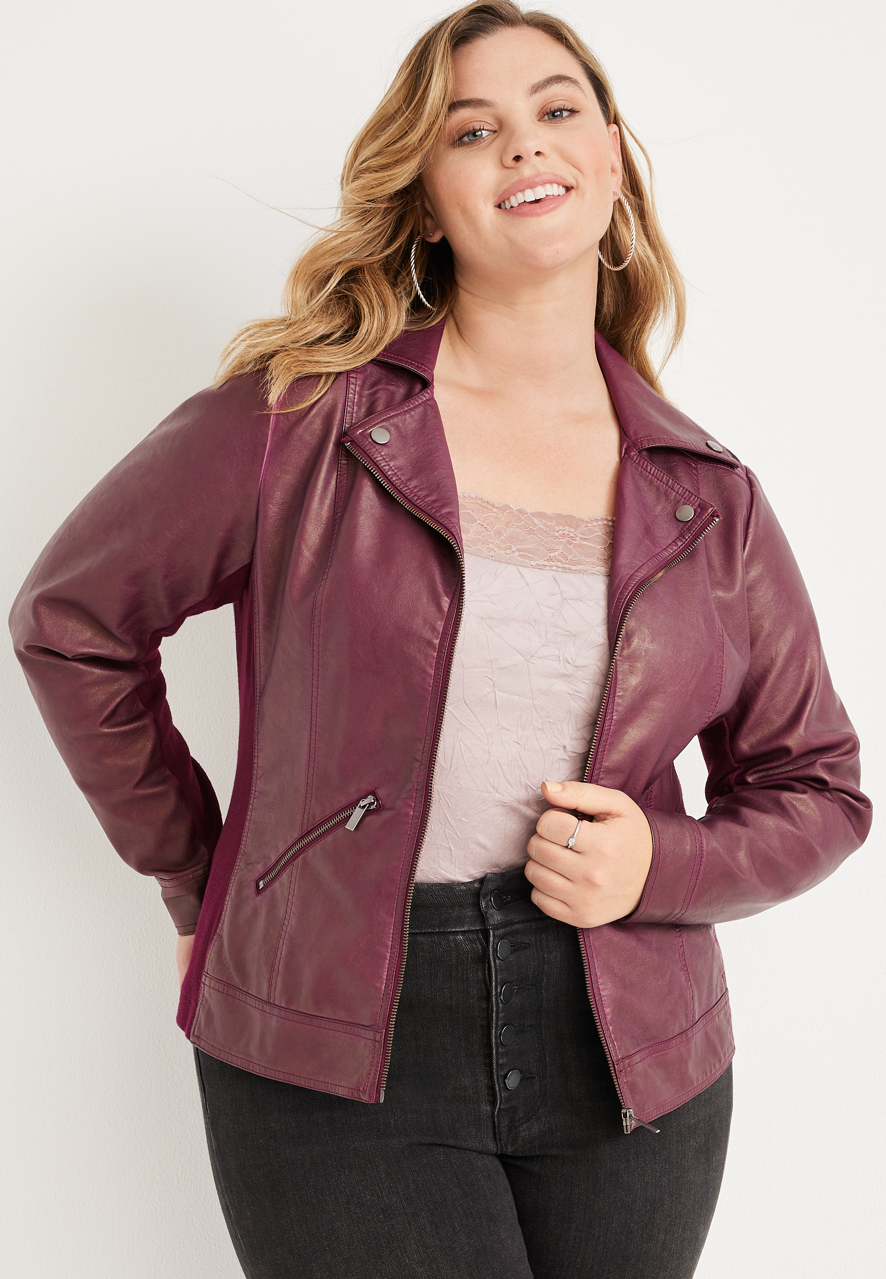 Berry faux outlet leather jacket